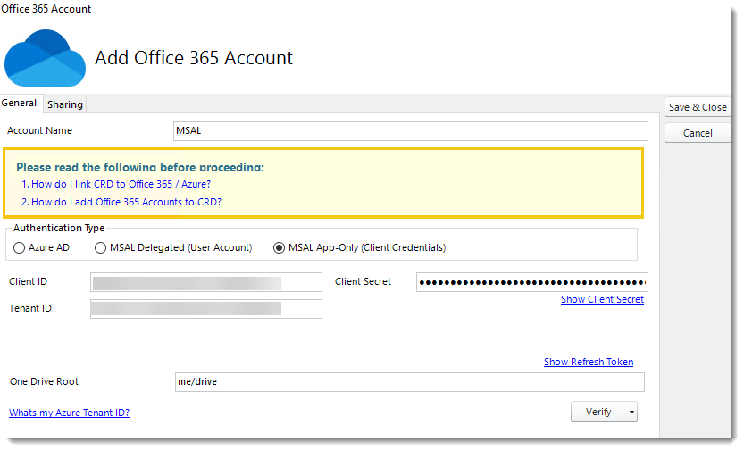 - Enter in your Client ID, Client Secret, and Tenant ID.