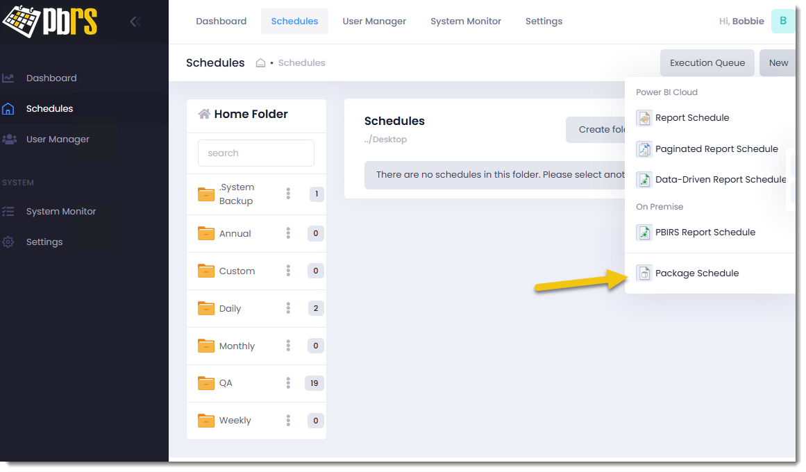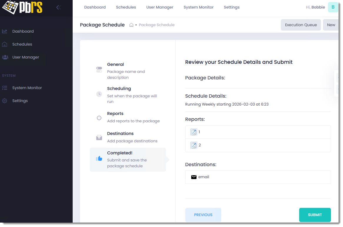You have now successfully created a Power BI Package schedule in the PBRS Web Application.