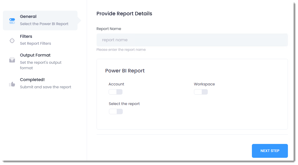 Step 9 - Under Provide Report Details, fill in the required information to set up your report.