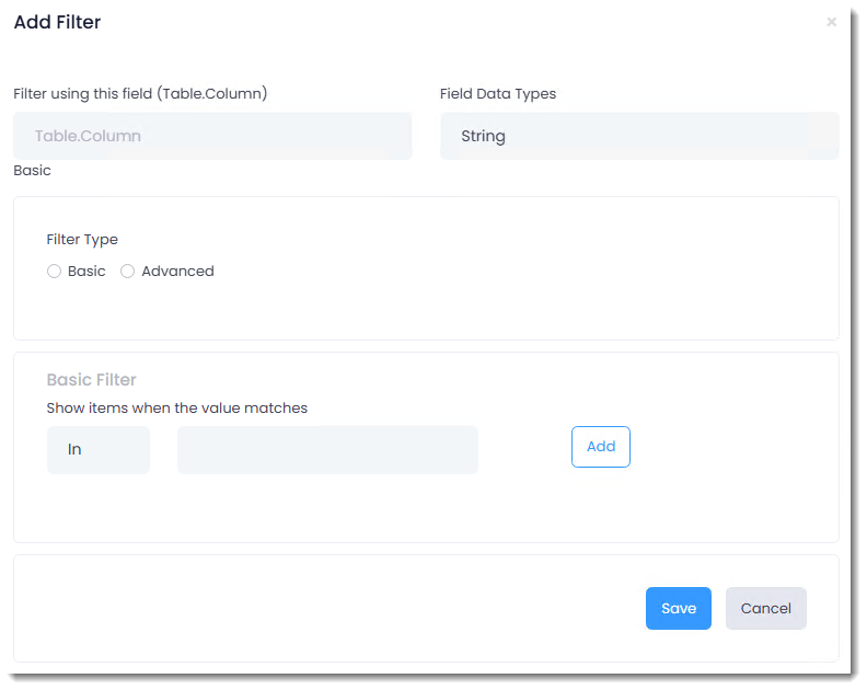 -Filter Type: Select Basic or Advanced.