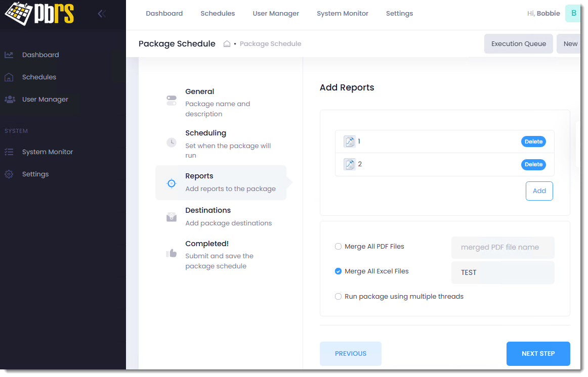 Step 13 - Repeat for any other reports you want to add to the package schedule.