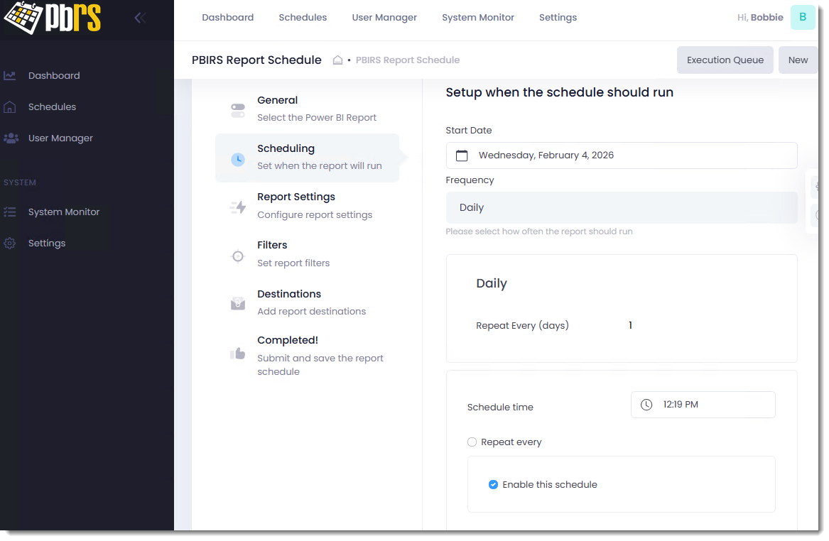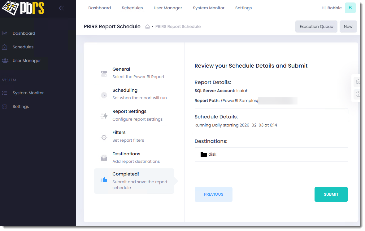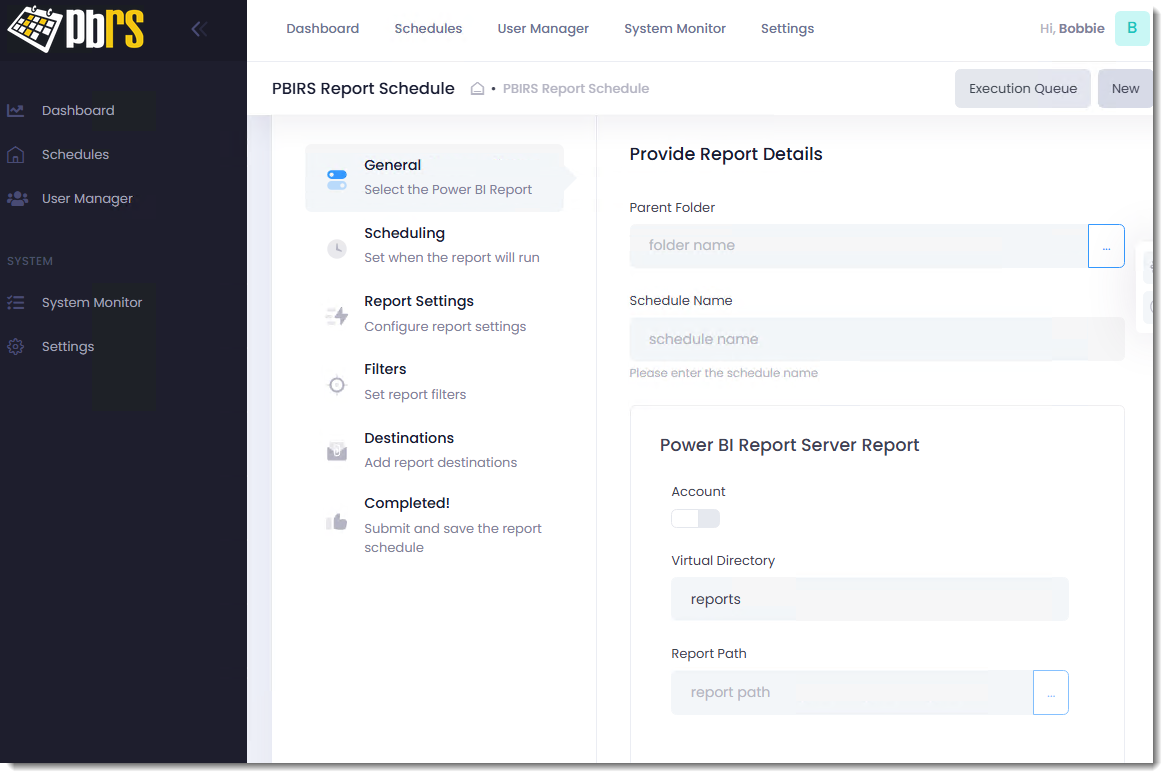 This article will provide a step-by-step guide to building and deploying a Single schedule for a Power BI on Premise report in the PBRS Web Application.