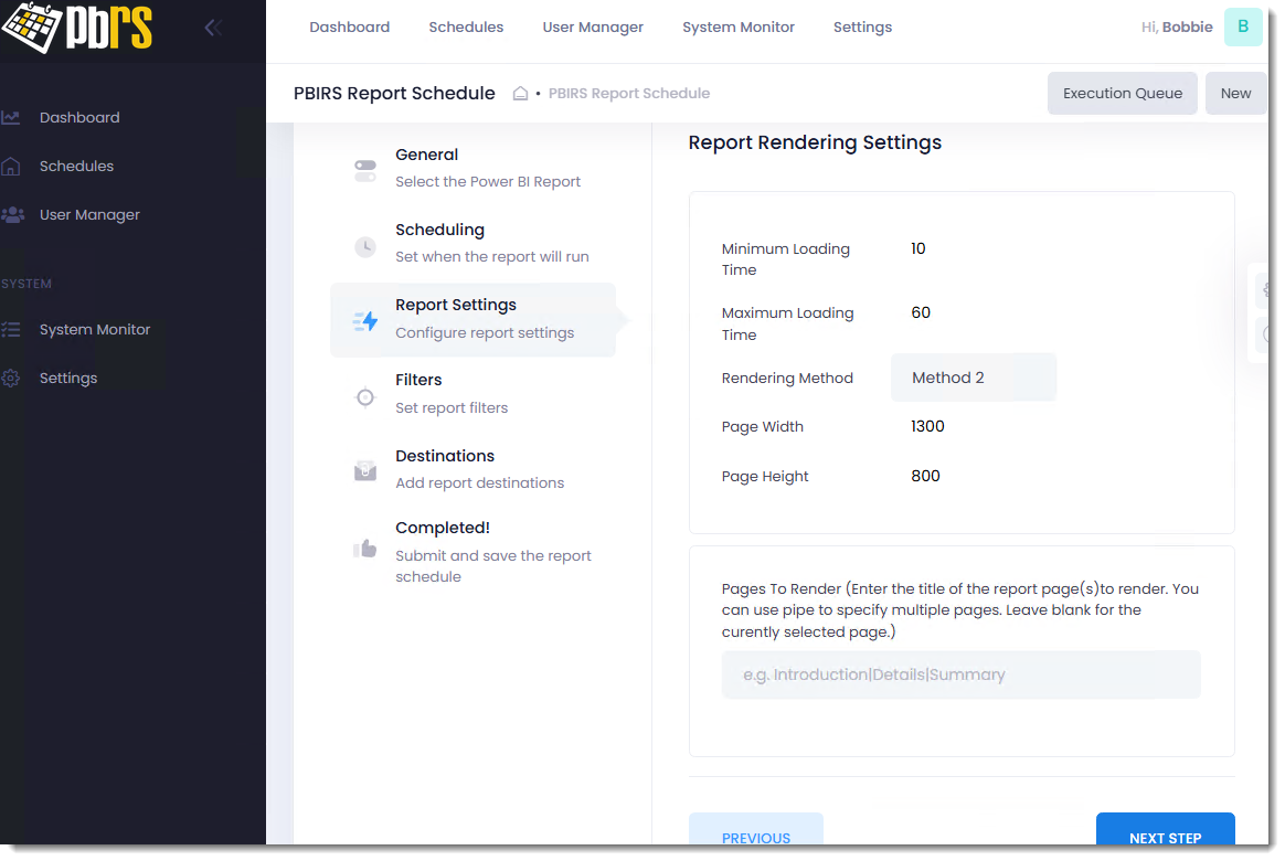 Step 9 - In the Report Rendering Settings section, you have the flexibility to customize and apply specific settings to the report according to your preferences.