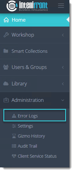Where is the Error Log in IntelliFront BI?