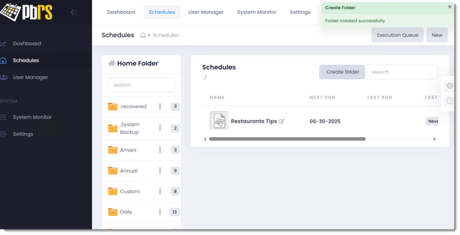 You can preview, execute, and enable/disable schedules using PBRS Web Application. Here's how.