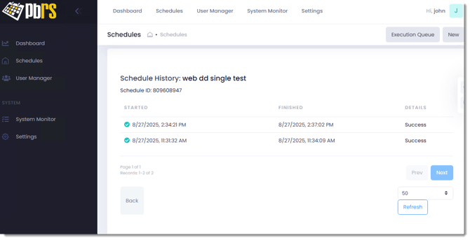 You will now be able to view the history of that schedule.