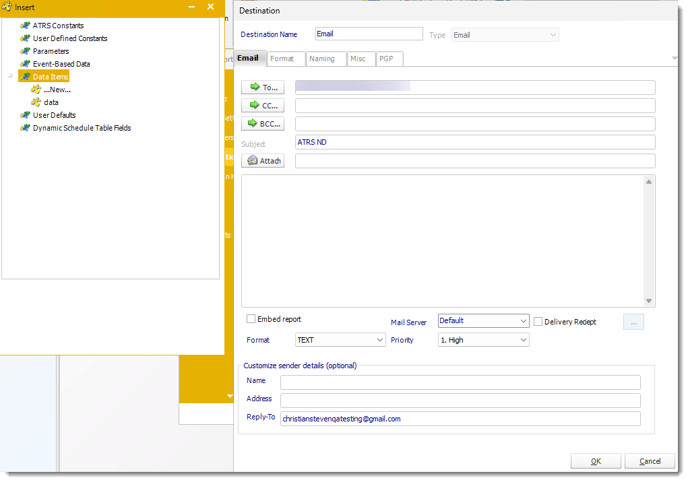 - Embed Report: Check this option to embed the report into the email body. When using MAPI messaging you can only embed reports in Text format. To embed reports in HTML format you will need to change your messaging type to SMTP.